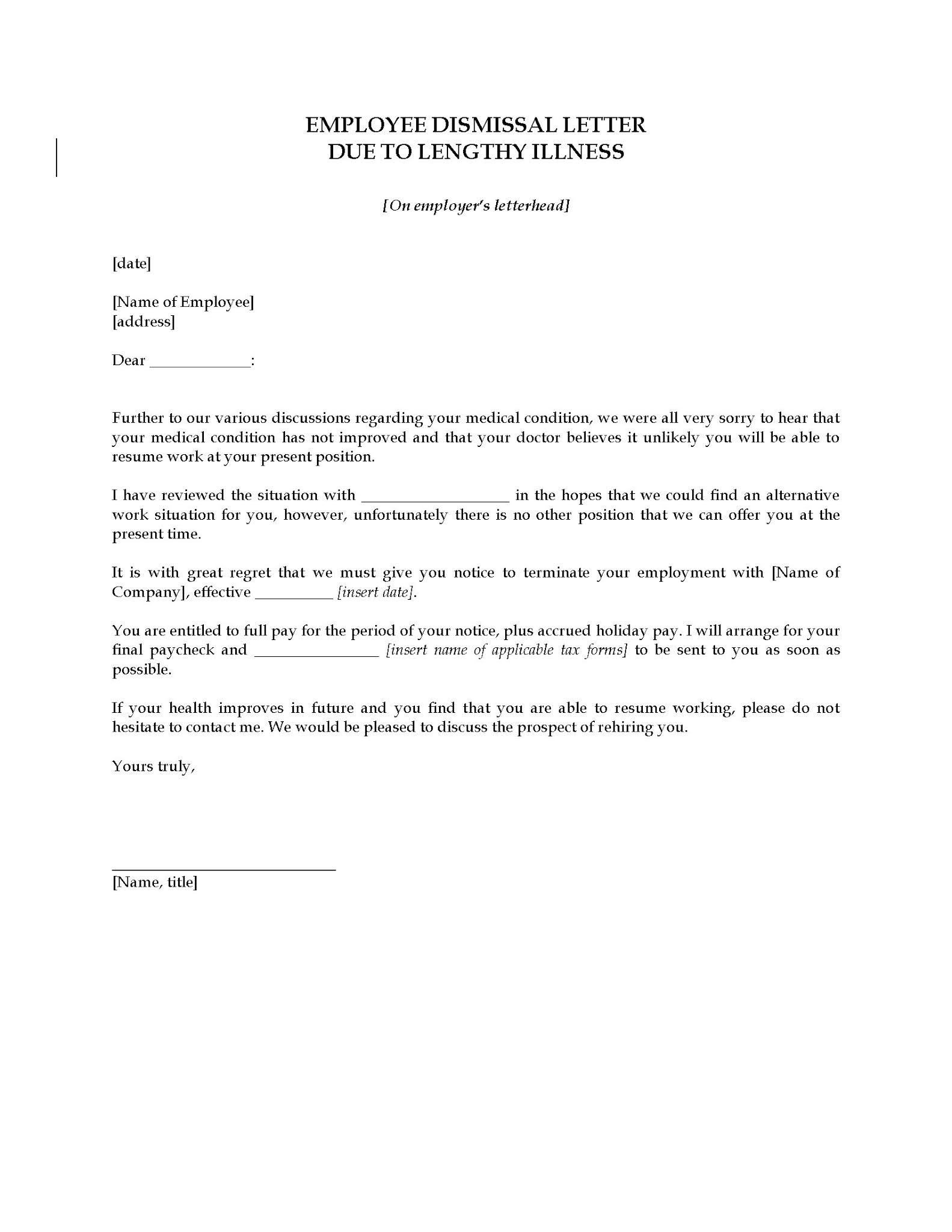 | Employee Termination Letter Due To |